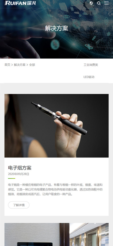 广州网站建设卓越迈创公司以浅绿色的基调制作瑞凡网站,形成一种既清新又严肃的设计感,充分展示电子元器件分销商的专业性,为客户量身打造的网站建设方案,满足个性化需求。